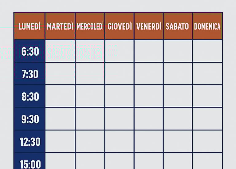 Visualizza il programma settimanale dei corsi per pianificare la tua partecipazione.